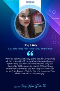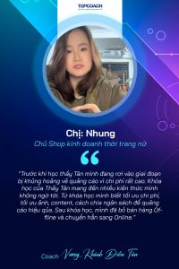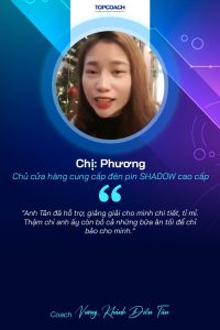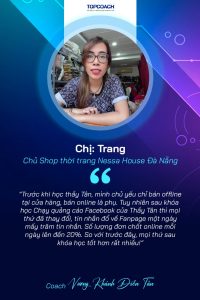 4 năm trước doanh số của mình đến từ khách hàng mua trực tiếp tại cửa hàng. Hầu như không có hoặc rất ít đơn hàng online. Mình đã may mắn gặp thầy Tân, được Thầy Coach cho khóa đào tạo Facebook, chạy quảng cáo hiệu quả. Kết quả rất vui là doanh số Online từ đó liên tục tăng lên gấp 4 – 5 lần so với trước đây. Kể cả khách đến cửa hàng trực tiếp mua cũng tăng rất nhiều